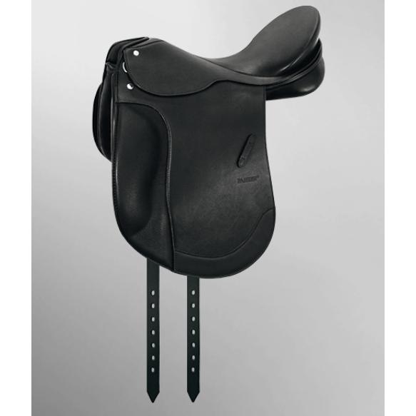 Denne lækre og meget moderne sadel med formskårede knæpuder, giver rytteren en tæt og meget direkte kontakt til hesten.
